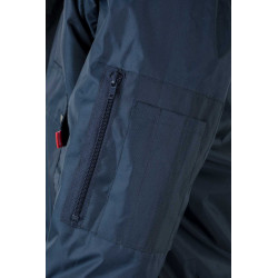 2 bolsillos interiores, uno en el pecho de vivo con cremallera y otro inferior de parche, con tapeta y velcro